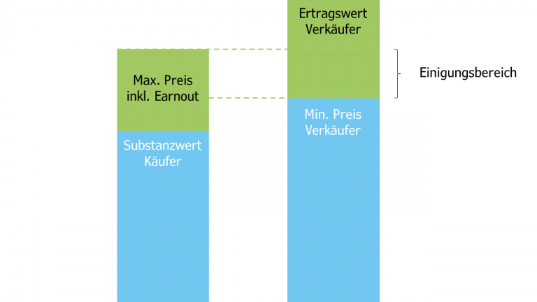 Chancen und Risiken lassen sich in der Praxis durch eine sogenannte Earn-Out-Klausel im Kaufvertrag gut verteilen. Der Grundgedanke liegt darin, dass der Kaufpreis nicht sofort fällig ist, sondern an Garantien bzw. Ziele gebunden wird. Bei Vertragsabschluss wird dann beispielsweise nur der oben genannte Substanzwert des Unternehmens fällig. Der variable Teil wird an Ziele geknüpft.